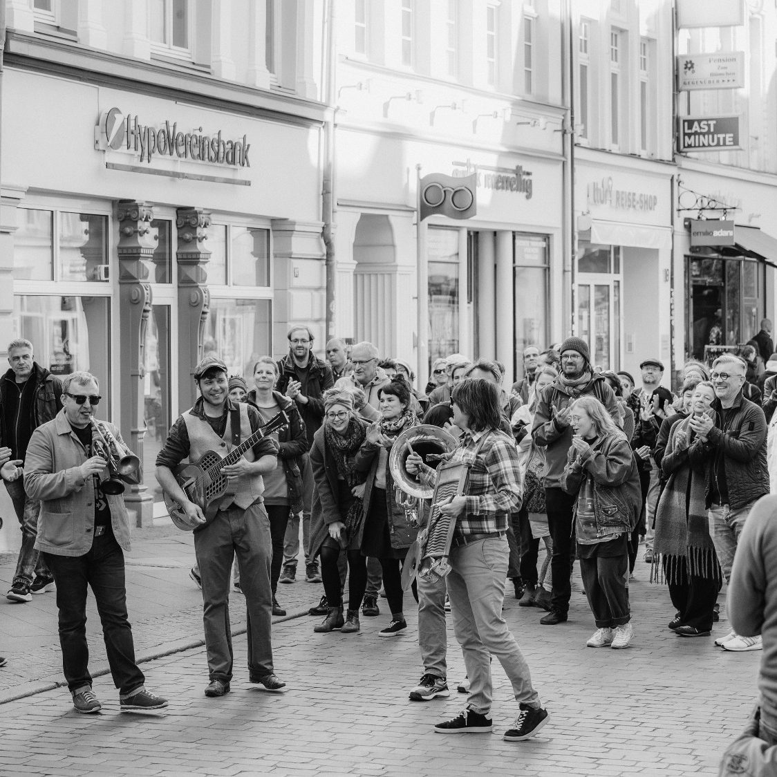 Musiker*innen und Tänzer*innen werden durch die Innenstadt ziehen, musizieren, tanzen und Freude verbreiten.